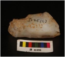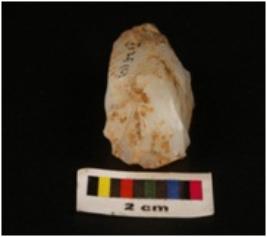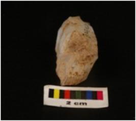 | Description / विवरण | A side scraper, regular retouch on side, blade scars visible, prominent platform. |
