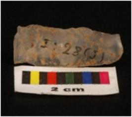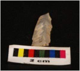 | Description / विवरण | Chalcedony parallel sided blade with a single mid ridge, one triangular section. |