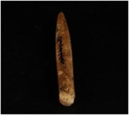 | Description / विवरण | Bone point, tapering in shape pointed from one end and other end is broken. |