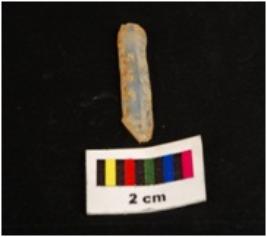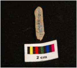 | Description / विवरण | Parallel sided microlith blade with double ridge on dorsal and use wear marks on cutting edge. Trapezoid in section. |
