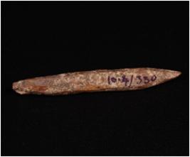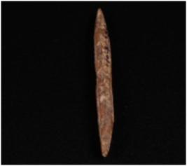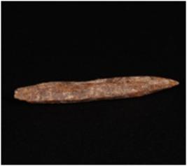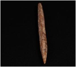 | Description / विवरण | Point of bone point with pointed end dark brown and uneven surface. |