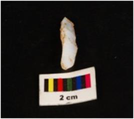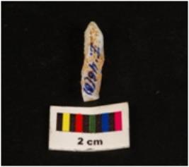 | Description / विवरण | Parallel sided microlith blade with use wear marks on cutting edges and prominent wavy mid ridge on dorsal. Deffused bulb on proximal end and triangular in section. |