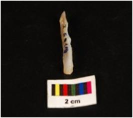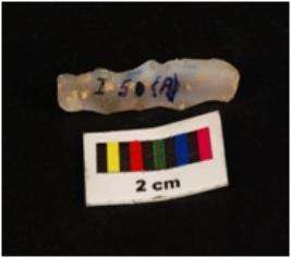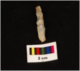 | Description / विवरण | Parallel sided microlith blade with use wear marks on cutting edges and prominent wavy mid ridge on dorsal. Deffused bulb on proximal end and triangular in section. |