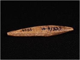 | Description / विवरण | Bone point with pointed end brownish and smooth surface. |