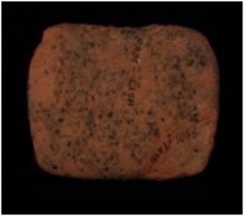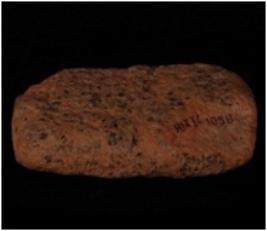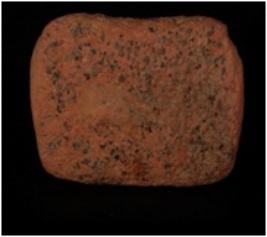 | Description / विवरण | Rectangular flesh rubber with black small pieces of concrete on surface. |