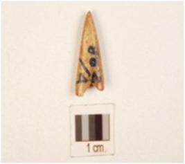 | Description / विवरण | Fragment of bone arrow head with polished surface and pointed end. |