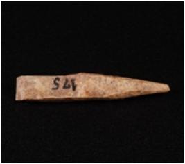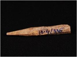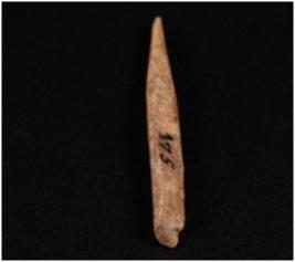 | Description / विवरण | Bone point with pointed end light brown, uneven surface, one end is broken. |