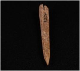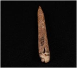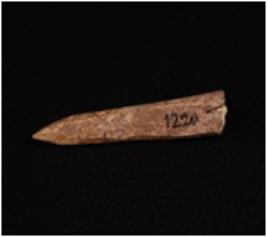 | Description / विवरण | Bone point with pointed end uneven and dark brown surface and one end is broken. |