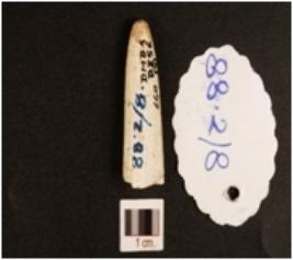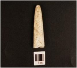 | Description / विवरण | Fragment of bone point, broken tip, polished surface and circular cross-section. |