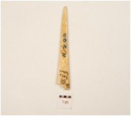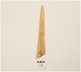 | Description / विवरण | A point made of bone, rectangular cross-section, polished surface, broken and manded. |