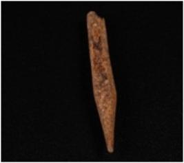 | Description / विवरण | Bone point with pointed end other end is broken, brown smooth surface. |
