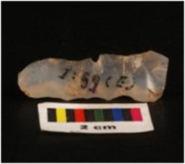 | Description / विवरण | Chalcedony parauel sided blade with a single wavy ridge. |