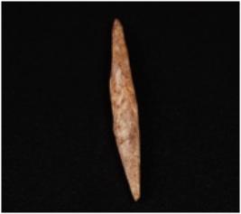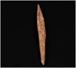 | Description / विवरण | Bone point with pointed ends brown and smooth surface. |