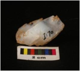 | Description / विवरण | Parallel sided core, five blade scars on surface, regular retouch marks on another side surface, prominent platform, cortex visible. |