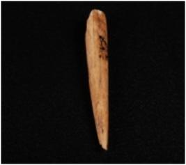 | Description / विवरण | Bone point with pointed end other end is broken, brown smooth and polished surface. |