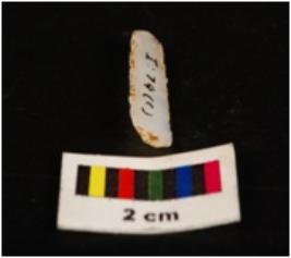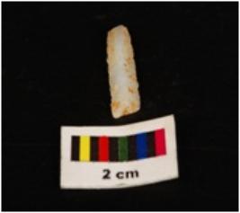 | Description / विवरण | Parallel sided microlith blade with prominent mid ridge on dorsal and use wear marks on cutting edges. Triangular in section and broken along distal end. |