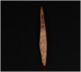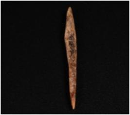 | Description / विवरण | Bone point with pointed end brown and smooth surface. |