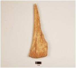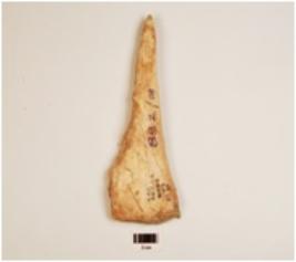 | Description / विवरण | Fragment of bone point, smooth, polished surface and cracks on surface. |