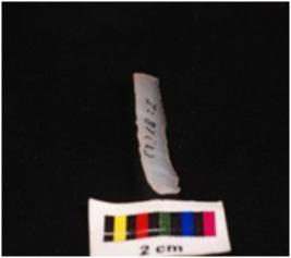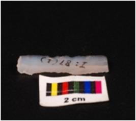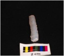 | Description / विवरण | Parallel sided blade, made up of chalcedony stone, ventral surface is smooth and use wear marks on edge. |