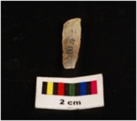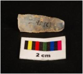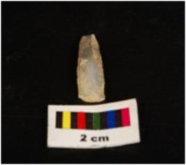 | Description / विवरण | Parallel sided microlith blade with double ridge on dorsal and use wear marks on cutting edges. Trapezoid in section. |