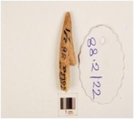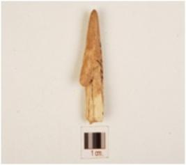| Description / विवरण | Fragment of harpoon made of bone, polished surface and polished from one end. |