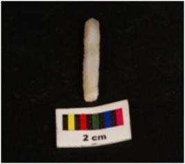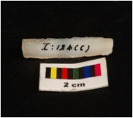 | Description / विवरण | Parallel sided microlith blade with use wear marks on cutting edges and double ridge on dorsal. Trapezoid in section. |