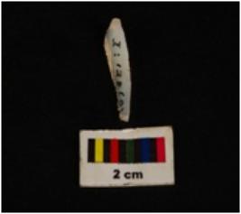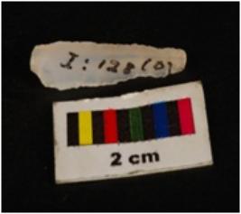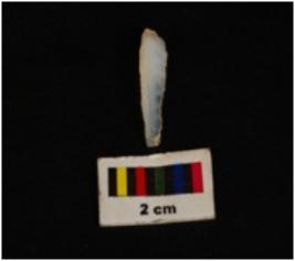 | Description / विवरण | Pen knife shaped chalcedony blade, proximal end, mid-ridge dorsal, flat end. Use wear edges. |