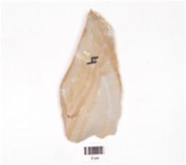 | Description / विवरण | A scraper made on end struck flake, flake scars on dorsal surface, pointed end, partly retouched on cutting edges. |