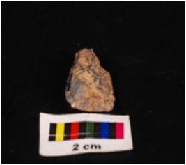 | Description / विवरण | Chalcedony blade with a double ridge on the dorsal side and a diffused bulb on percussion on the proximal end. |