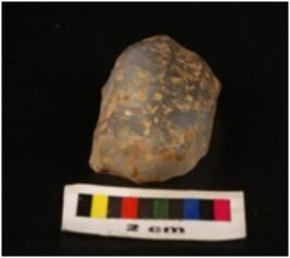 | Description / विवरण | Chalcedony core, six blades detached from one side surface. |