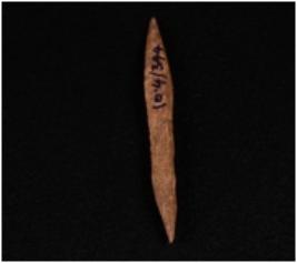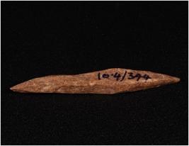 | Description / विवरण | Bone point with pointed end brown and smooth surface. |