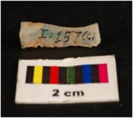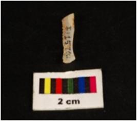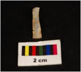 | Description / विवरण | Parallel sided chalcedony blade, mid-ridge on dorsal, flat ventral, irregular edges. Proximal end. |