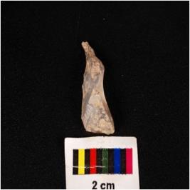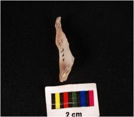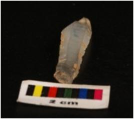 | Description / विवरण | Chalcedony parauel sided blade with a double ridge, regularly retouched edges, one detached portion. |