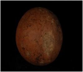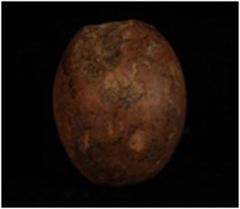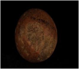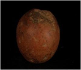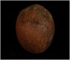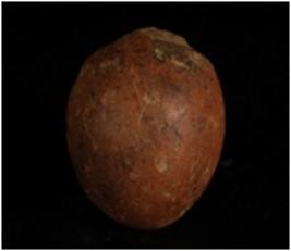 | Description / विवरण | Terracotta circular sling ball with smooth surface. |