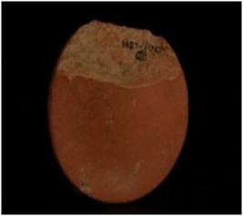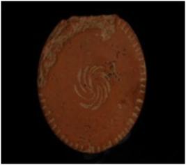 | Description / विवरण | Terracotta disc with incised work on edges and nail mark floral design in centre of the object and sides are broken. |