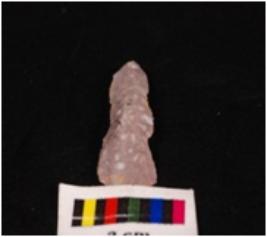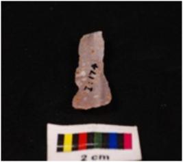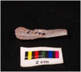 | Description / विवरण | Parallel sided blade on chert with a double ridge on the dorsal side, striking platform and diffused bulb on percussion on the proximal end and retouched edges. |