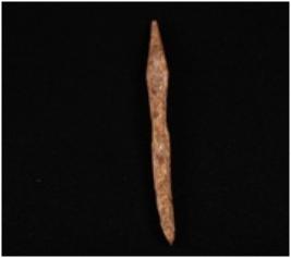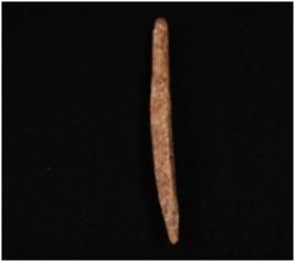 | Description / विवरण | Point of bone with an intact tips, light brown and smooth surface. |