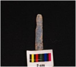 | Description / विवरण | Parallel sided blade with two riges on dorsal side, use wear mark on cutting edges, it has trapzoid section, prominent bulb on proximal end. |