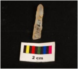 | Description / विवरण | Parallel sided microlith blade with wavy ridge on dorsal and use wear marks on cutting edges. Triangular in section. |