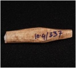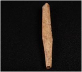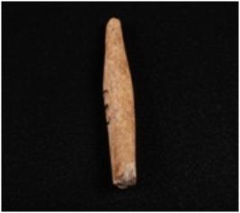 | Description / विवरण | Point of bone with broken tip, other side is completely broken, light brown and smooth surface. |