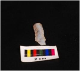 | Description / विवरण | Chalcedony parallel sided blade with a single mid-ridge, trapezoide in section and regularly retouched edges. |
