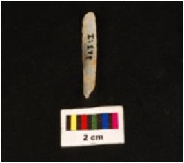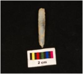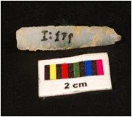 | Description / विवरण | Blade with flake scars triangular cross section parallel side working edge. Proximal end with striking platform. Distal end pointed. |