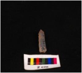 | Description / विवरण | Pen knife blade, made on chalcedony stone, ridge on dorsal surface, and ventral surface is smooth and slightly curved, edges are retouched. |