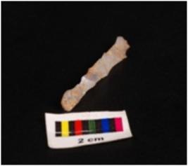 | Description / विवरण | Pen knife blade, made up of chalcedony stone, ridge on dorsal surface and surface is uneven, ventral surface is smooth. |