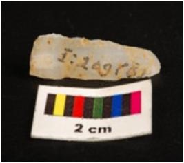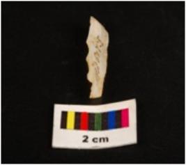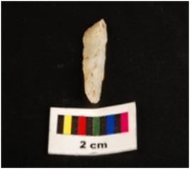 | Description / विवरण | Parallel sided microlith blade with wavy prominent mid ridge on dorsal and use wear marks on cutting edge. Triangular in section. |