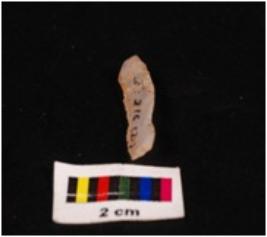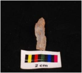 | Description / विवरण | Parallel sided blade on chalcedony with a single mid-ridge on dorsal side, diffused bulb on ventral side, triangular in section, distal end broken and use-wear marks on the cutting edges. |