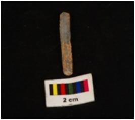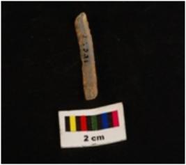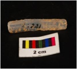| Description / विवरण | Parallel sided microlith blade with use wear marks on cutting edges and prominent mid ridge on dorsal. Triangular in section. |