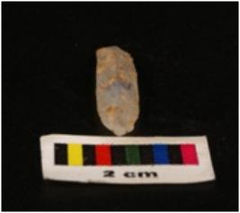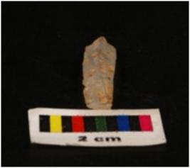 | Description / विवरण | Chalcedony parauel sided blade with a single mid ridge, triangular section, detached from one end. |