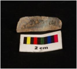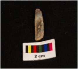 | Description / विवरण | Parallel sided microlith blade with use wear marks on cutting edges and double ridge on dorsal. Deffused bulb on proximal end and trapezoid in section. |