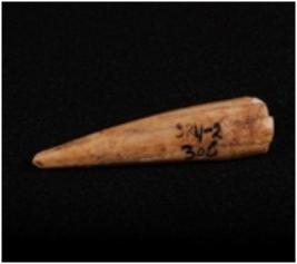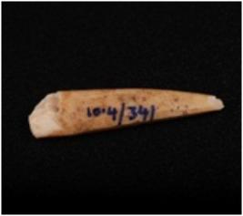 | Description / विवरण | Point of bone with an intact tip, other side is completely broken, brownish smooth surface. |
